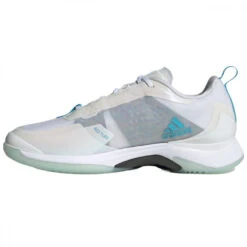 Adidas Womenâs Avacourt Tennis Shoes (White/Silver Metallic/Bright Cyan)